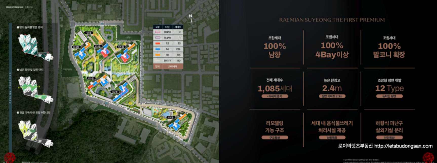 부산에서 선호도가 높아 브랜드 프리미엄이 있는 수영구의 첫 래미안으로 그 기대가 높습니다.