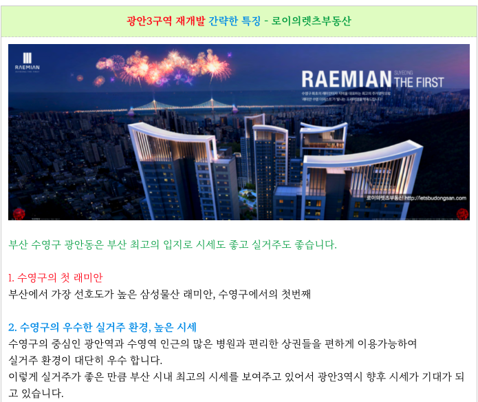 (래미안 광안) 광안3구역 재개발 : 래미안 제안 내용, 예상일정 그리고 매물