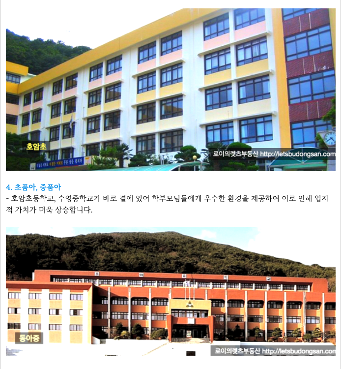 호암초, 수영중을 바로 곁에 있어 초품아, 중품아 단지이기도 하며