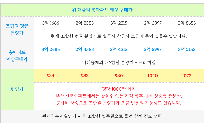 현재 부산 일반 분양가가 2000을 훌쩍 넘어가서 3000도 넘게 나오는 상황에서
