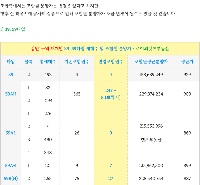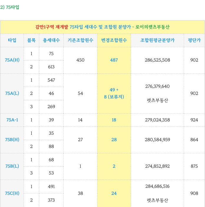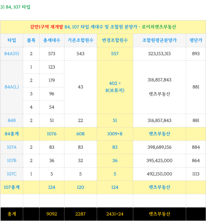 신도시급 감만1구역 재개발 타입별 세대수 그리고 현 조합원 분양가 소개해 드리곘습니다.
