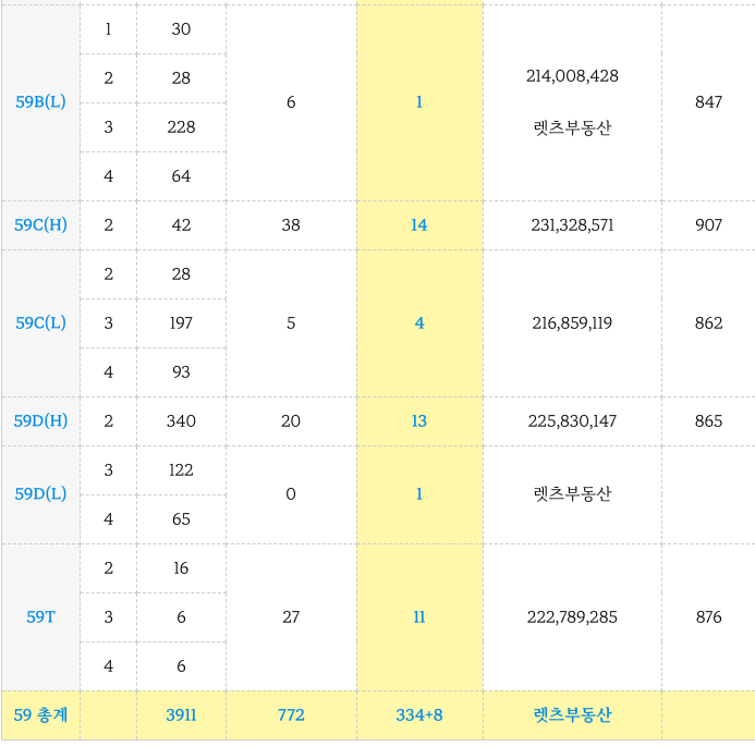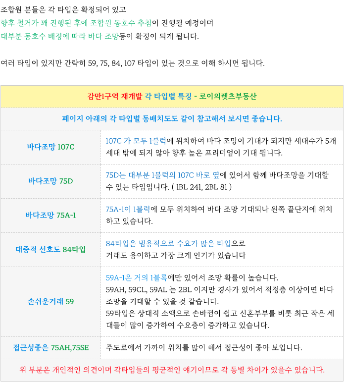 이주중인 감만1구역 간략한 타입별 특징을 정리하였습니다.