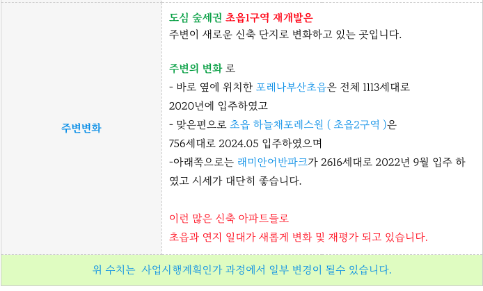 숲세권 초읍1구역 주요 입지적 특징 간략 다시 정리 하였습니다.