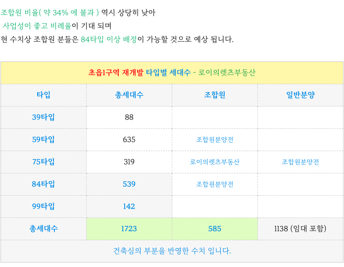 초읍1구역 재개발 타입별 세대수 (건축심의 기준) 정리하였습니다.