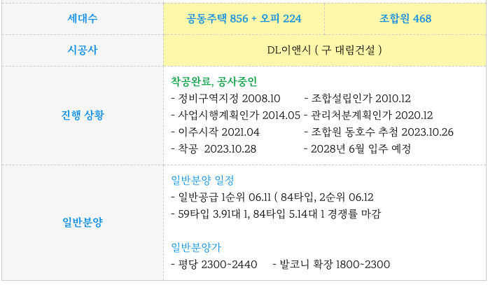 - 일반분양 1순위 : 84타입 5.14대 1 경쟁률, 59타입 3.91대 1 경쟁률