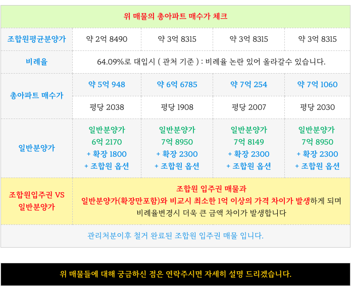 그 결과, 최소 1억 이상의 가격 차이가 발생하므로 당연히 조합원 입주권의 가격이 훨씬 매력적입니다.