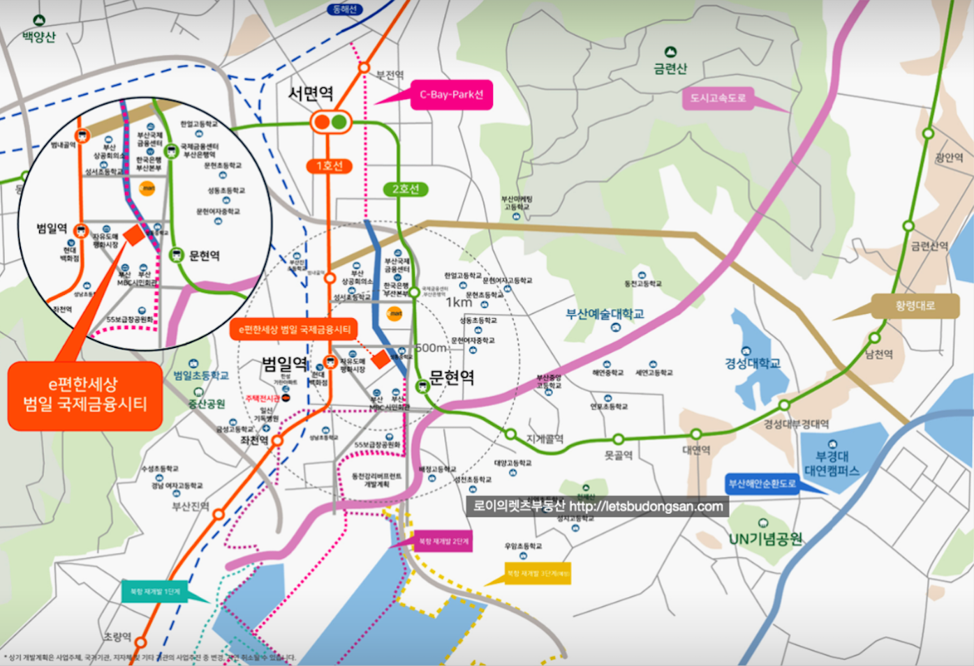 부산 지하철1호선 범일역과 2호선 문현역 5분여 거리에 위차한 역세권으로