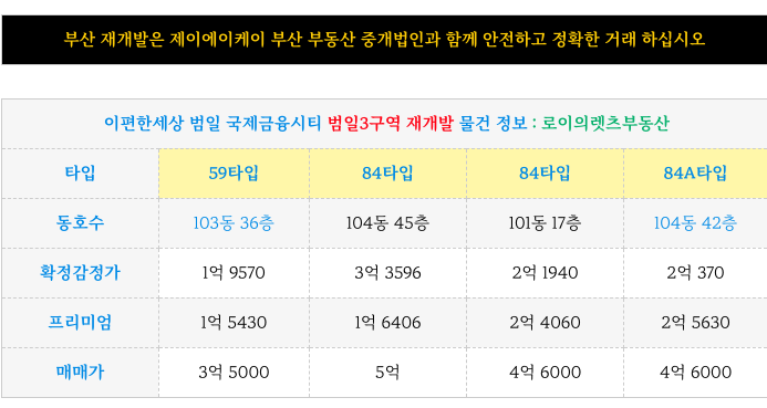 (이편한세상 범일 국제금융시티) 가격 더 착한 조합원 입주권 매물 : 범일3구역 재개발