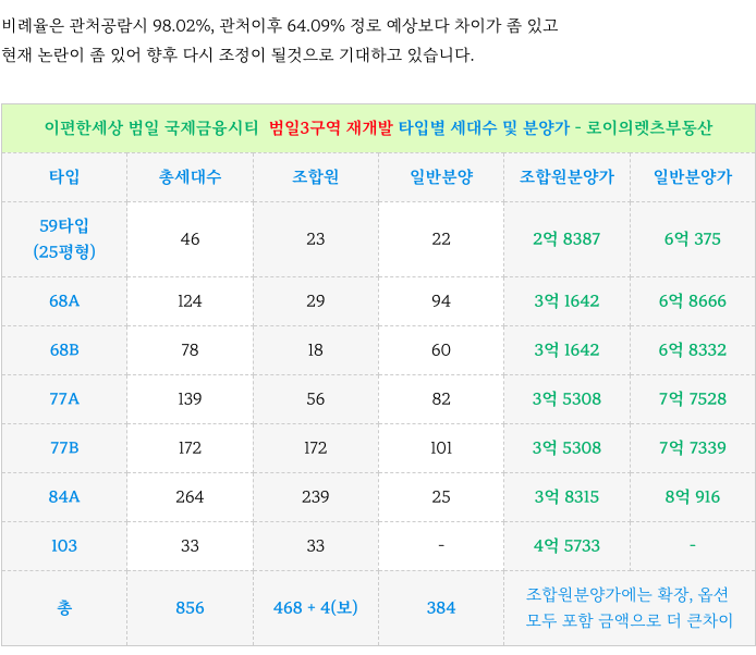 범일3구역 재개발 일반 분양가, 조합원 분양가 그리고 타입별 세대수 소개해 드리겠습니다.