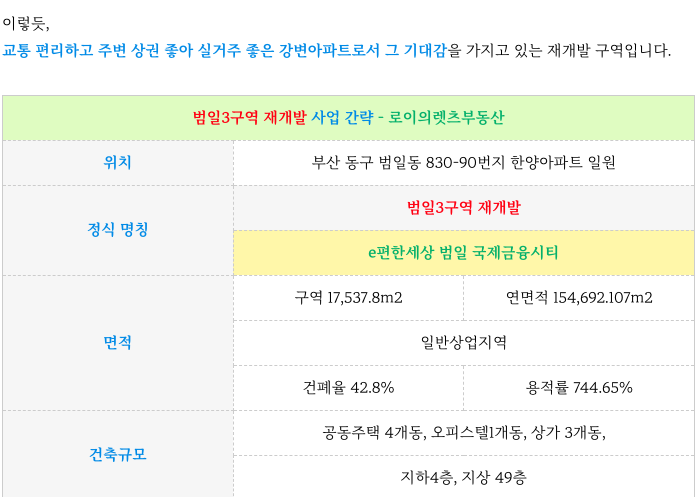 범일3구역 재개발 주요 입지적 특징등 추가 정보는 아래 페이지를 참고 부탁드립니다.