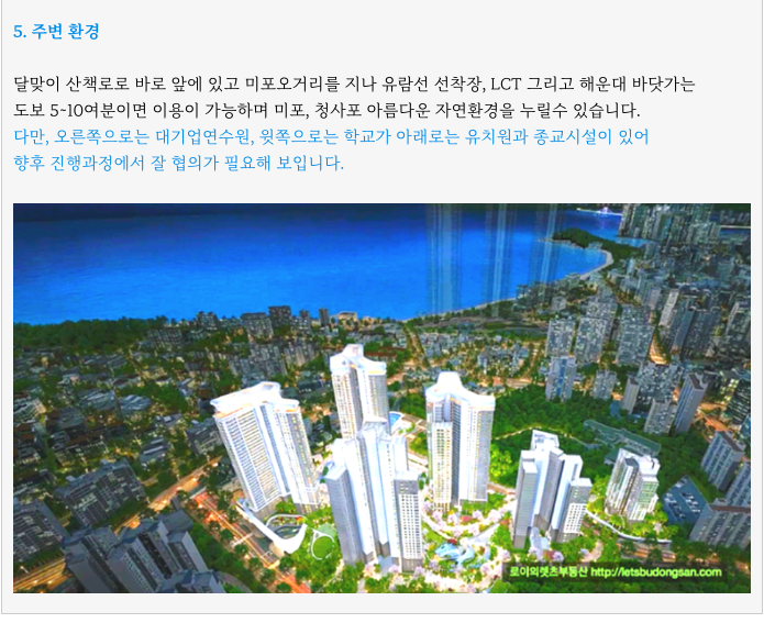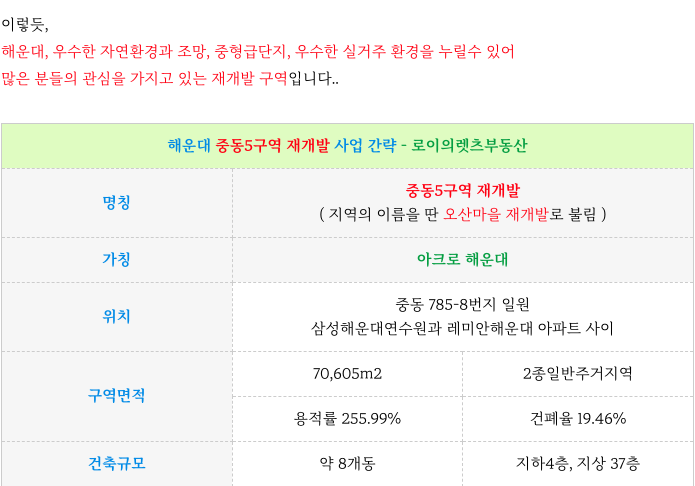 빠른 진행 중동5구역 이 위치한 전국구 해운대의 특징을 소개해 드리곘습니다.