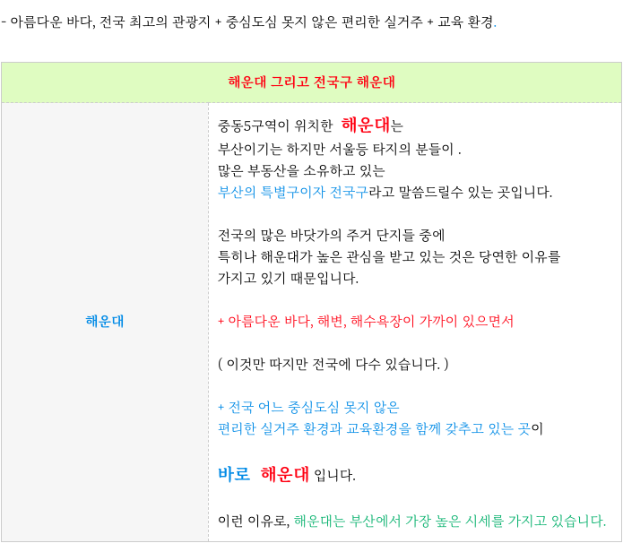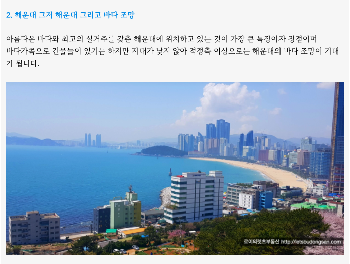 - 해운대의 우수한 실거주 환경을 가지고 있습니다.
