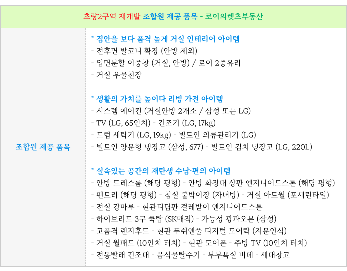 초량2구역 재개발 조합원 제공 품목 소개해 드립니다.