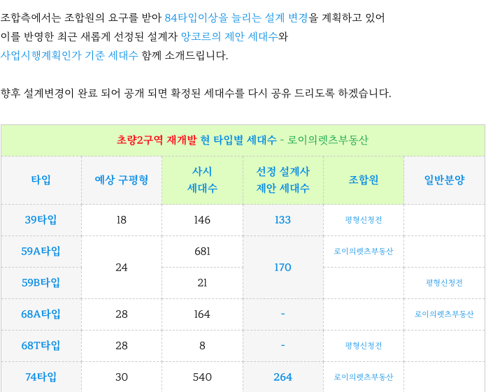 북항바라보는 초량2구역 계획중인 타입별 세대수 소개해 드립니다.