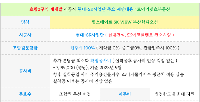 초량2구역 재개발 새로운 시공사의 주요 제안 부분 정리 드립니다.