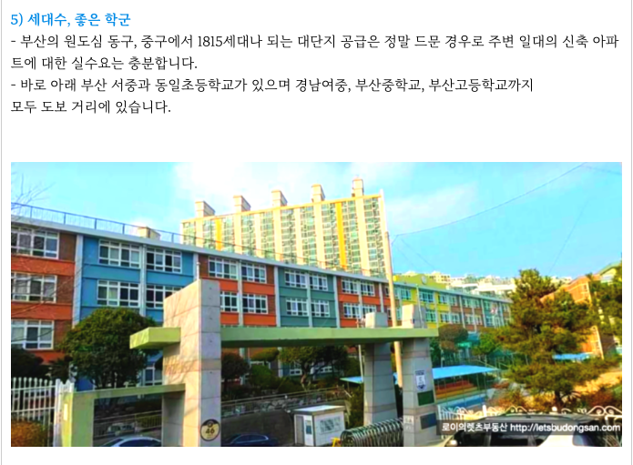 아래로 부산중, 부산서중, 경남여중, 부산고 등 다수의 우수한 학교들이 위치하여