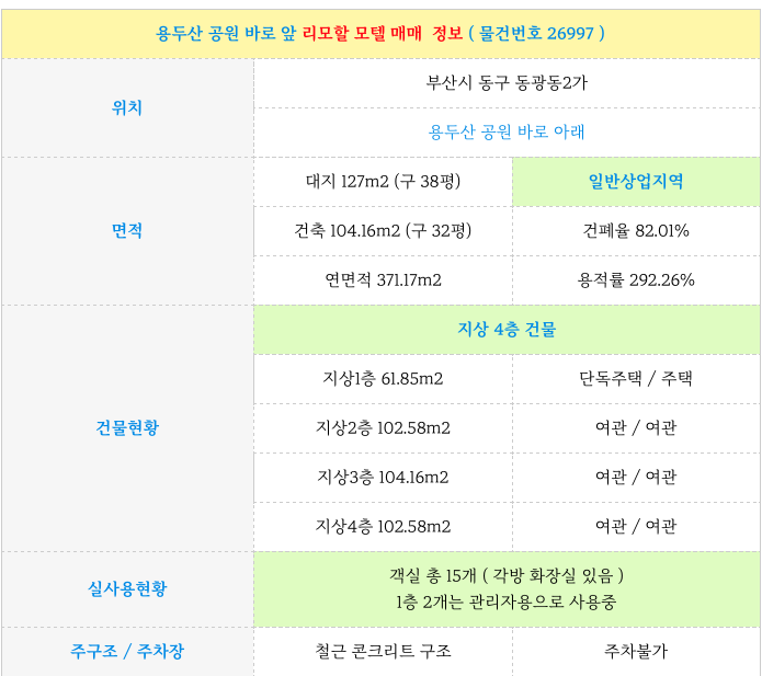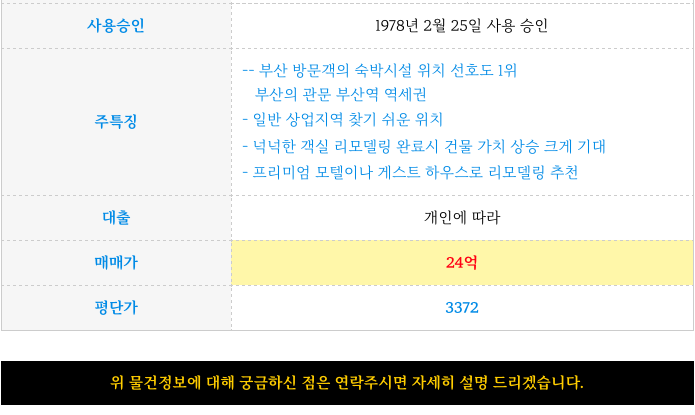 부산역앞 or 용두산 공원 앞 리모할 모텔 건물 매물 소개해 드리겠습니다.