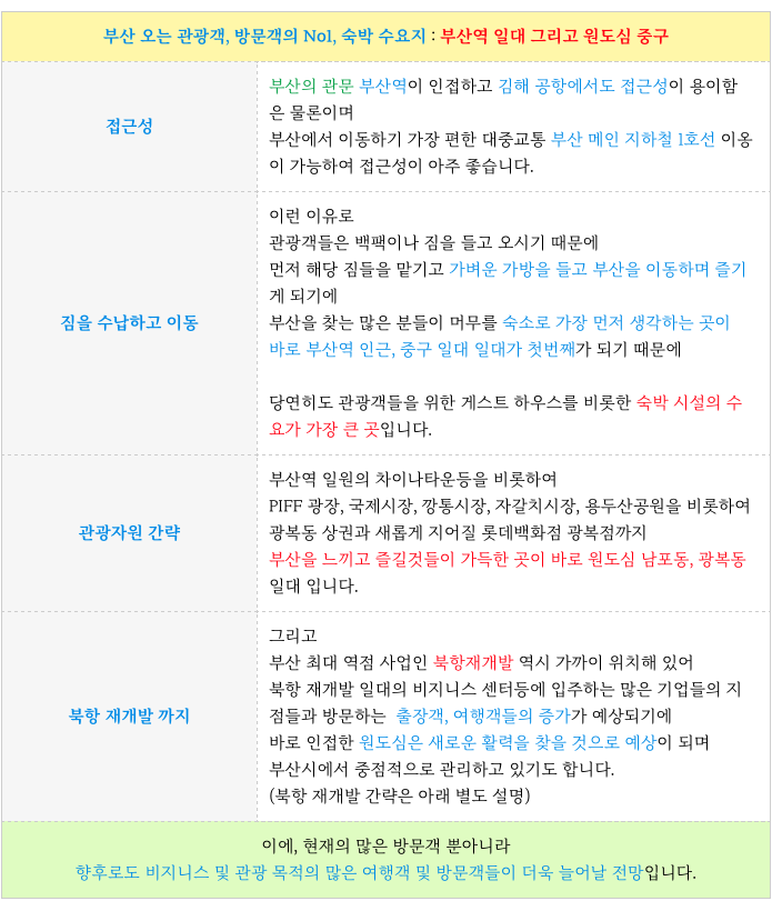 - 부산 방문객의 숙박시설 위치 선호도 1위 부산의 관문 부산역 역세권