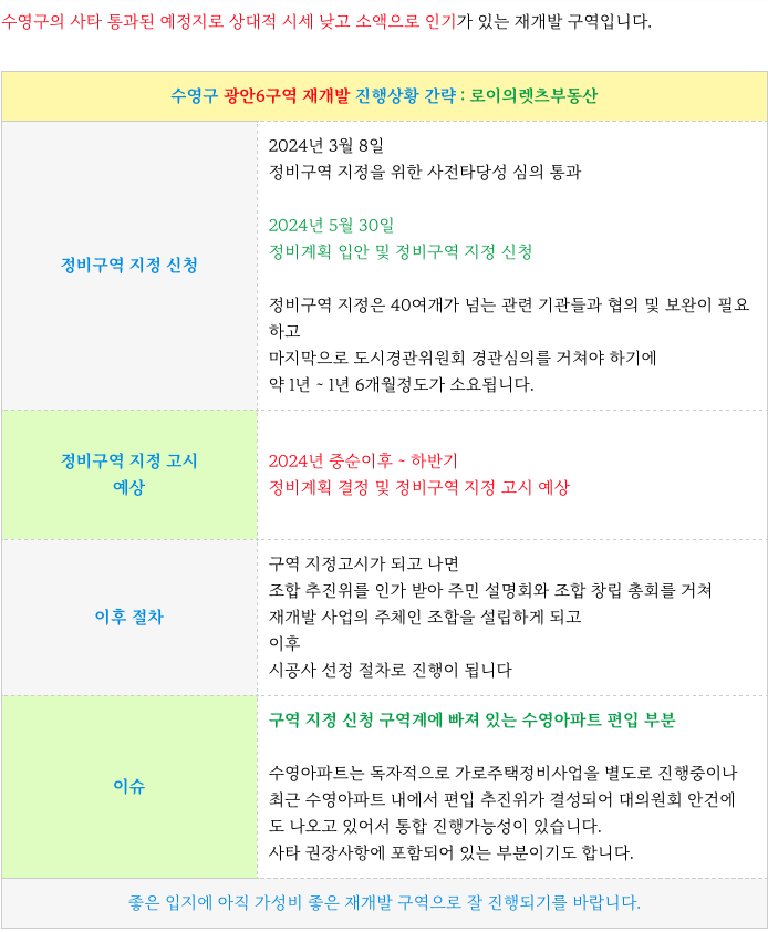수영구 광안6구역 재개발 가성비 좋은 소액 매물과 진행소식 정리해 드리겠습니다.