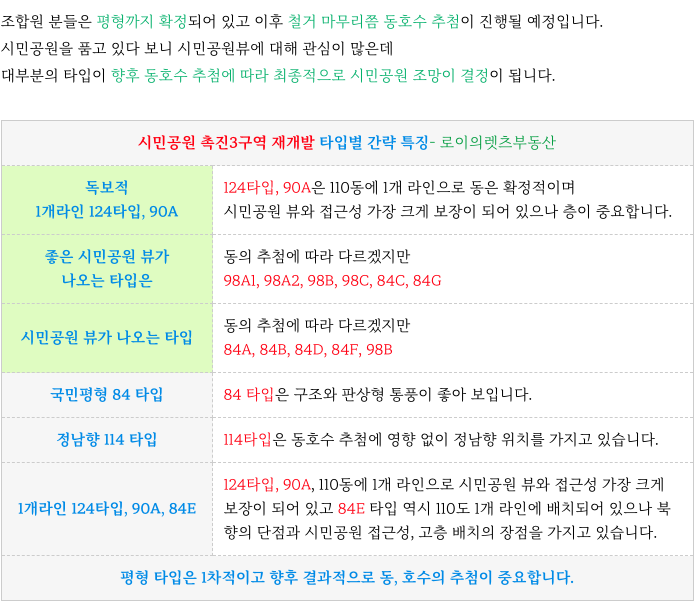 촉진3구역 재개발 타입별 세대수 등 소개해 드리겠습니다.