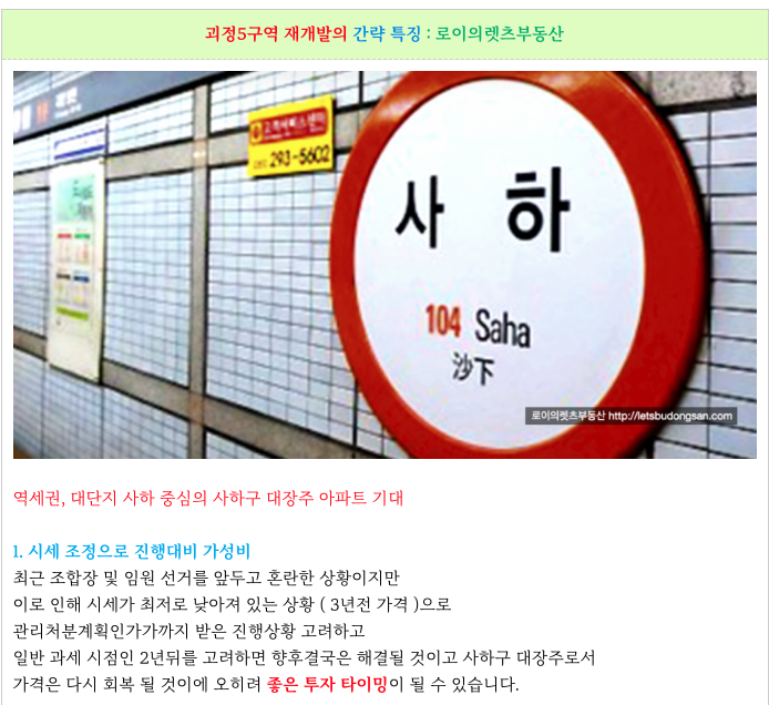 안녕하세요 로이의렛츠부동산 ( JAK 제이에이케이 부산 ) 입니다. 오늘은 시공사 선정 총회 앞둔 사하 ...