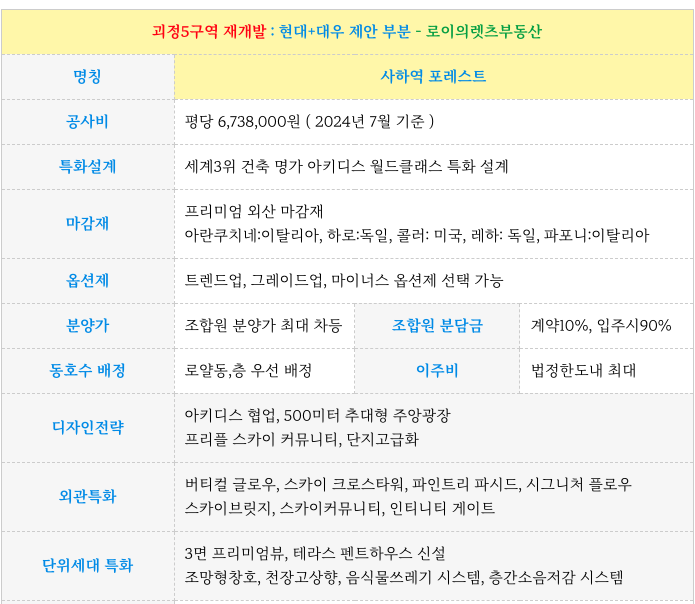 괴정5구역 재 금일 기준 매수 가능한 타입별 매물 소개해 드리곘습니다.