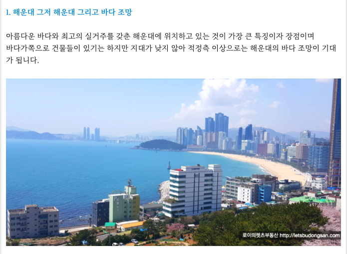 중동5구역 재개발 위치한 해운대, 해운대의 간략 특징 입니다.