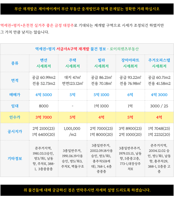 부산 전역 재개발에 대해 궁금하신 사항은 방문 또는 연락주시면 자세히 설명 드리겠습니다.