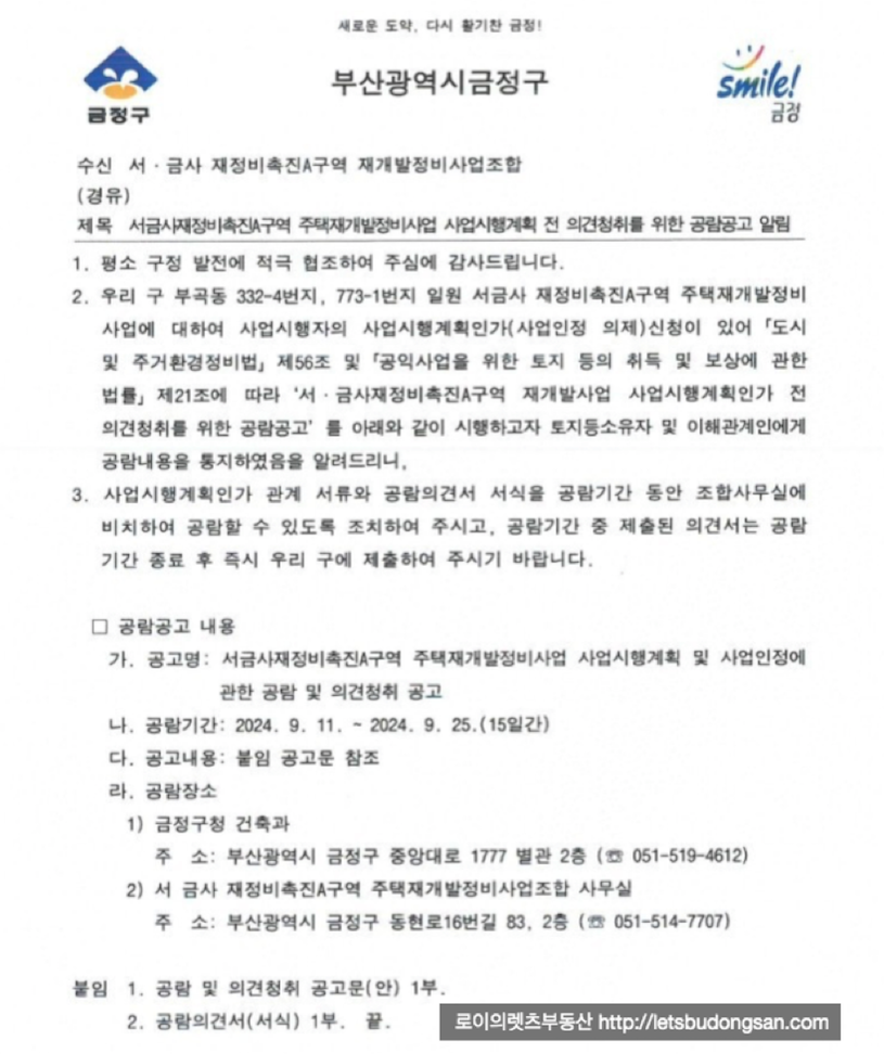 서금사A구역 재개발 사시 공람 일정 소식과 현 가능 매물 소개해 드리겠습니다.
