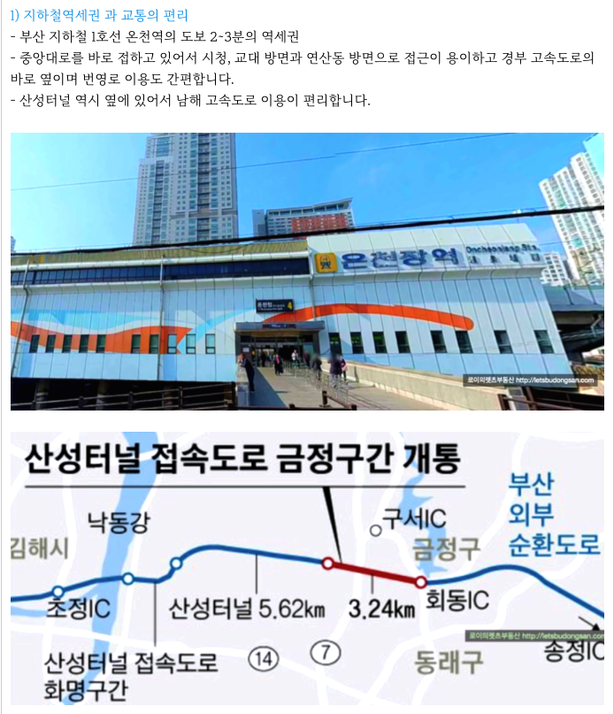 인접한 경부고속도로, 번영로, 산성터널, 부산시내외 이동이 좋고
