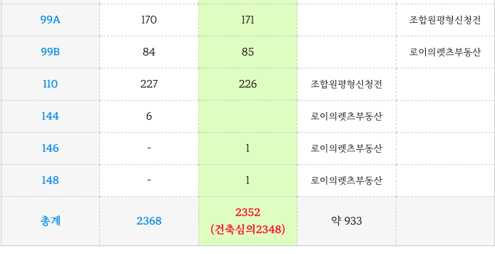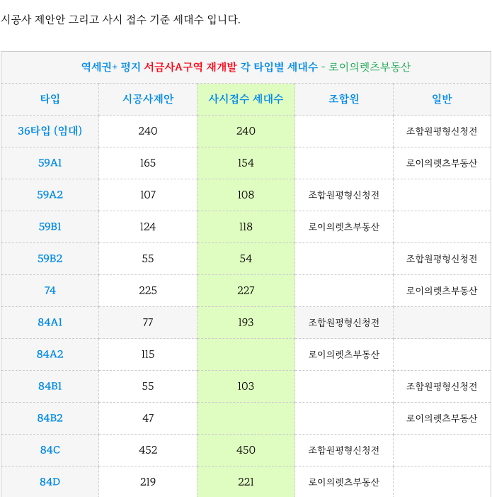 서금사A구역 재개발 예정 타입별 세대수 소개해 드리곘습니다.