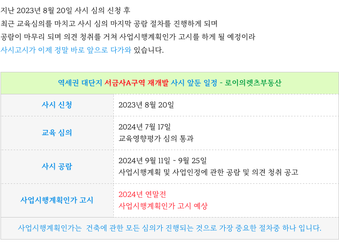 (사시공람) 서금사A구역 재개발 : 사시 임박 소식, 일정 & 현 매물 소개
