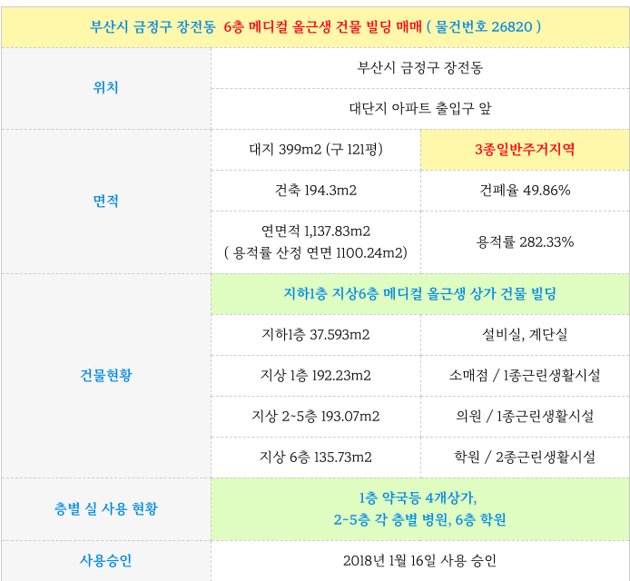 부산시 금정구 장전동 6층 메디컬 올근생 건물 빌딩 매물 매매