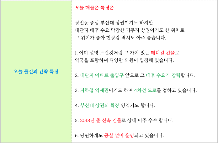 부산시 금정구 장전동 6층 메디컬 올근생 건물 빌딩 매물 정보 정리 해드립니다.