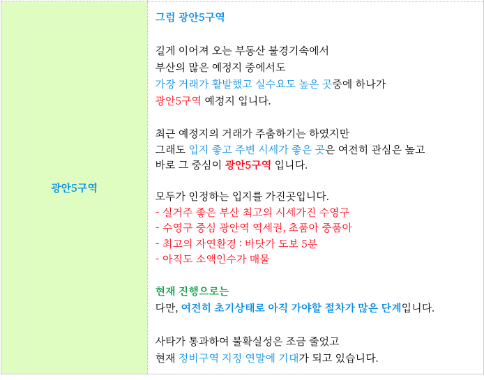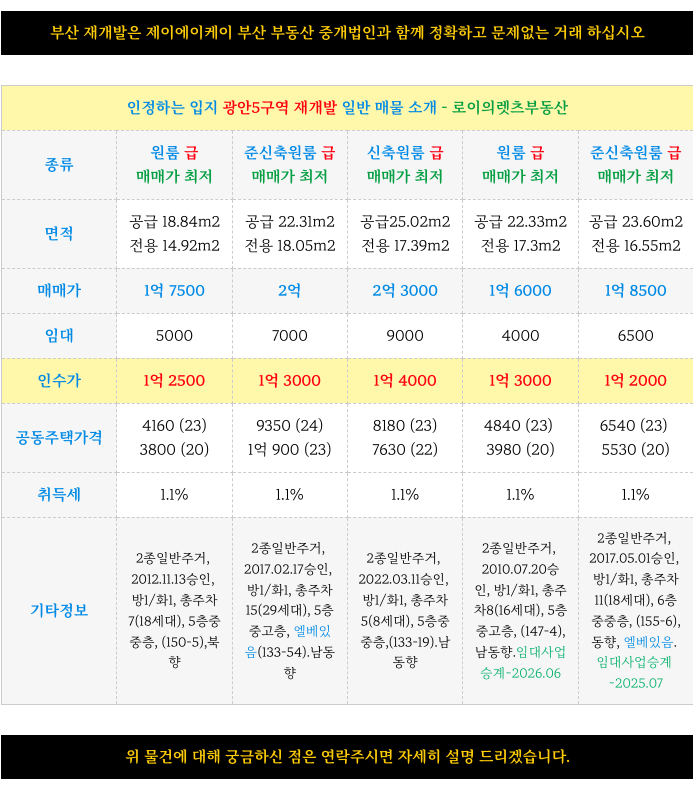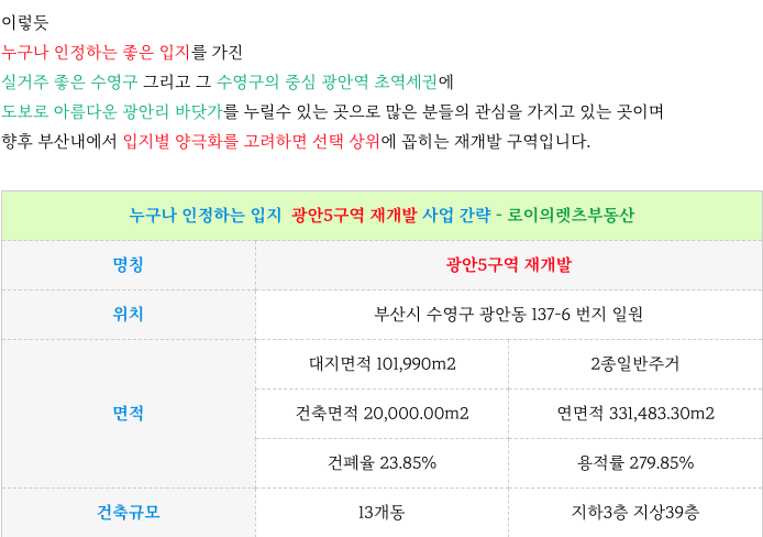 입지 우수한 광안5구역 현재 매수 가능한 좋은 매물 정리 드립니다.
