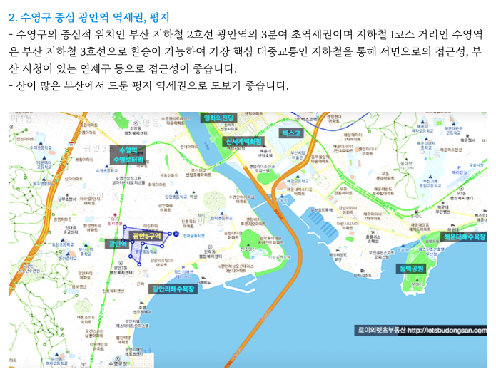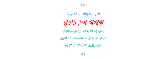- 수영구 중심 광안역 초역세권, 초품아, 중품아, 평지.