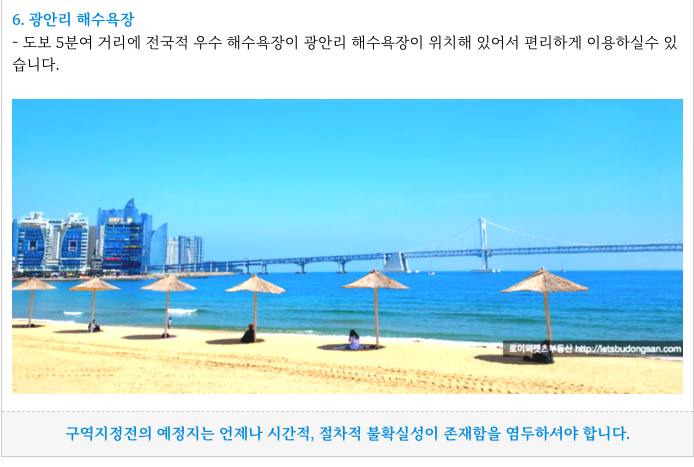 아름다운 광안리 바닷가를 도보 5분여로 누릴수 있다는 큰 장점을 가지게 됩니다.