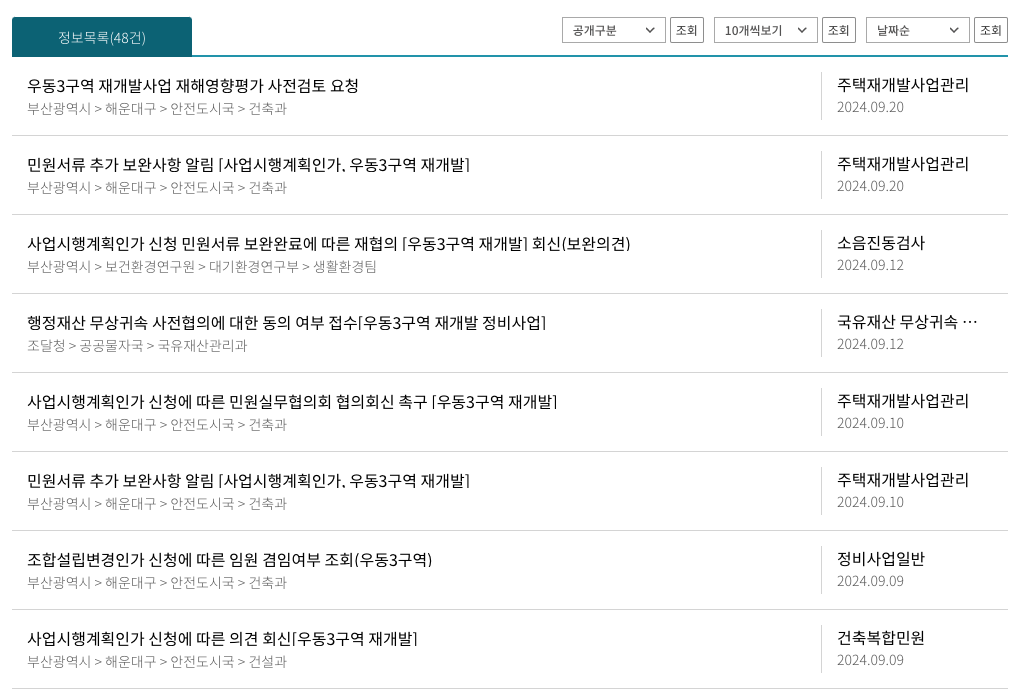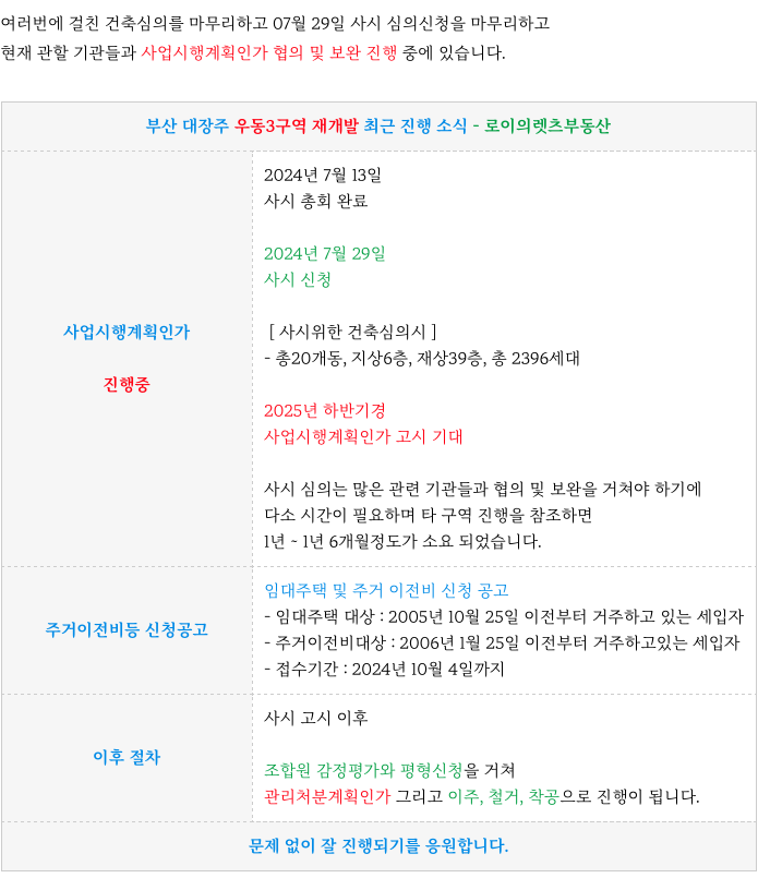 우동3구역 재개발 일자별 주요 진행 사항 & 이후 절차 정리등 추가 정보는 아래 페이지를 참고 부탁드립니다