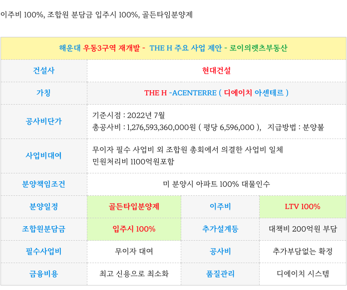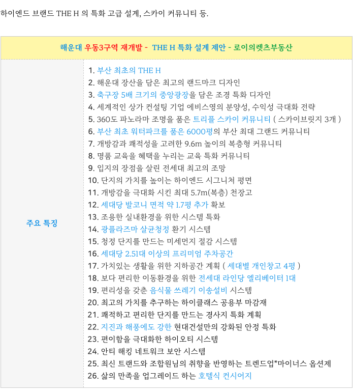 우동3구역 재개발 시공사 현대 건설의 THE H 제안 부분 소개해 드립니다.