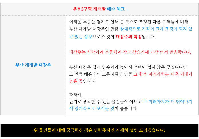 부산 전역 재개발에 대해 궁금하신 점은 방문 또는 연락주시면 자세히 설명 드리겠습니다.