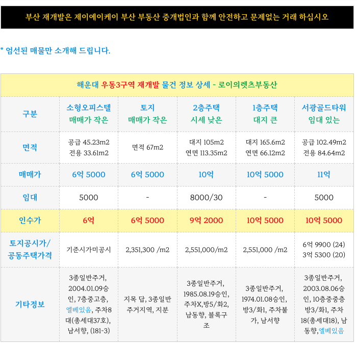 우동3구역 재개발 최저 가능 매물들 정리하였습니다.