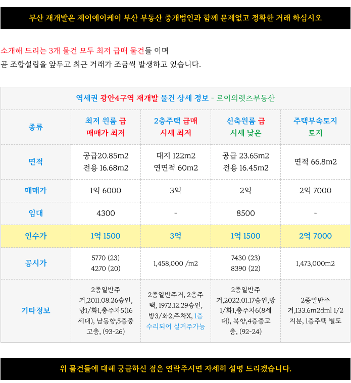 광안4구역 재개발 현 최저 급매 매물들 소개 드립니다.