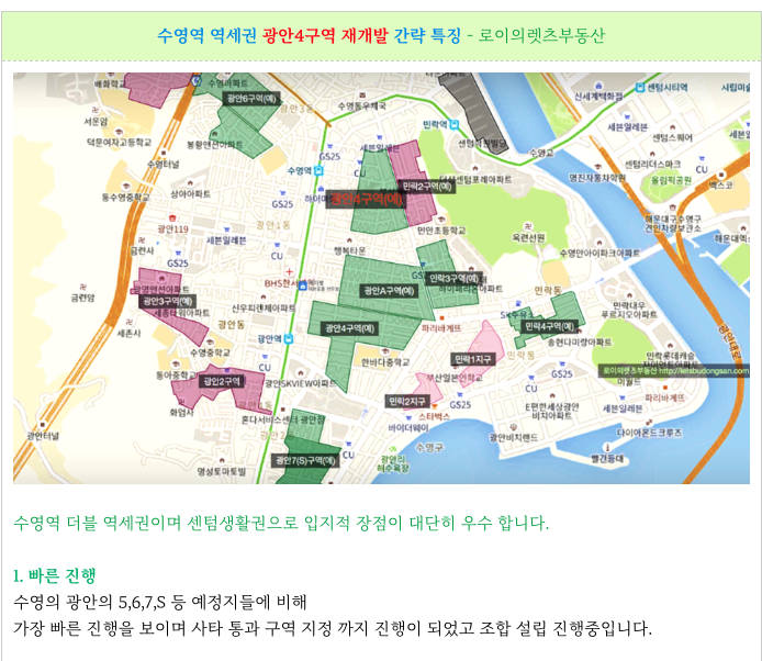 수영역 역세권 광안4구역 진행 일정과 특징 그리고 최저 급매 매물 소개해 드리겠습니다.