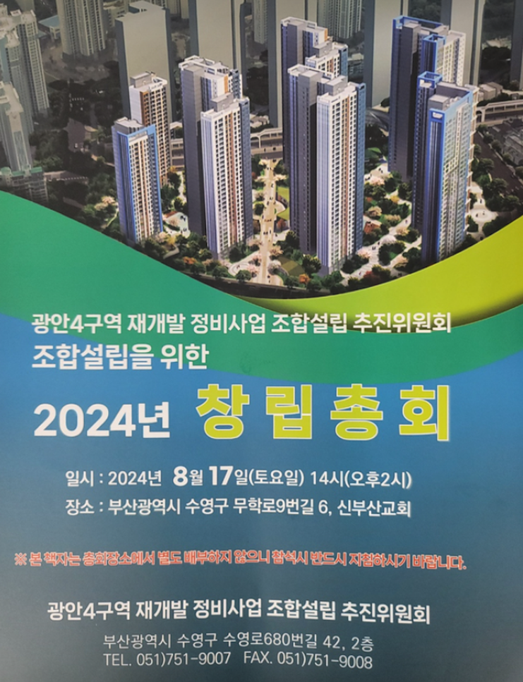 광안4구역 재개발은 조합창립총회를 거쳐 조합설립인가 신청을 하였습니다.