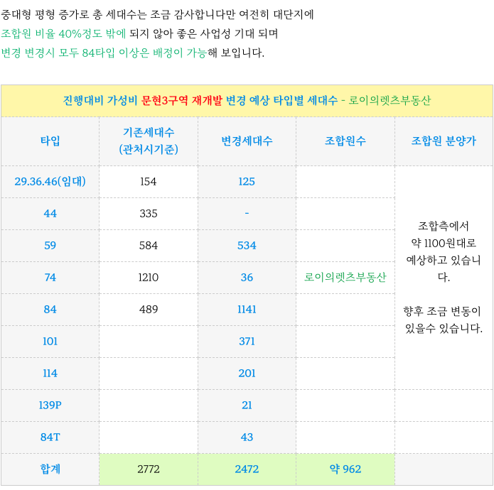 문현3구역 재개발 타입별 세대수 소개해 드리겠습니다.