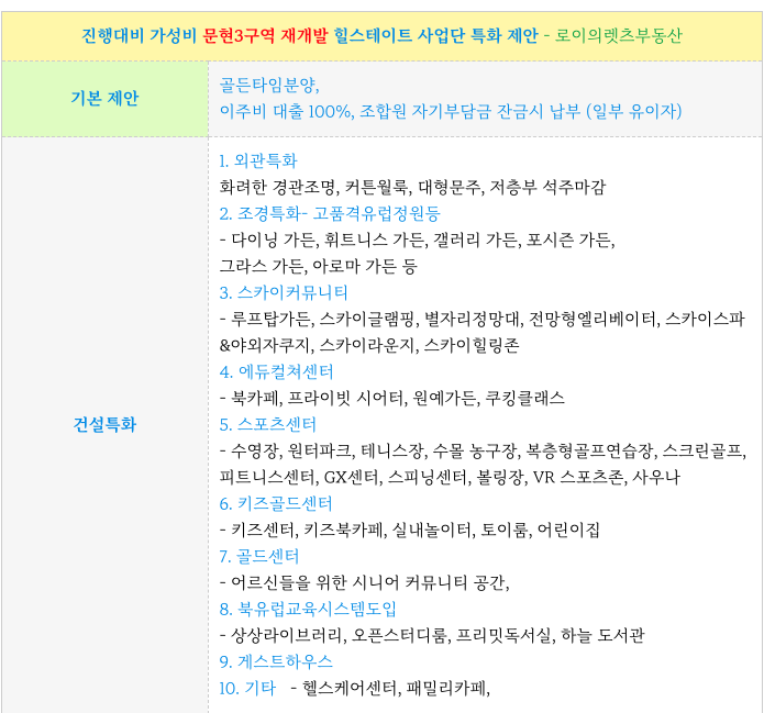 - 골든타임분양, 조합원 분담금 100% 입주시 납부