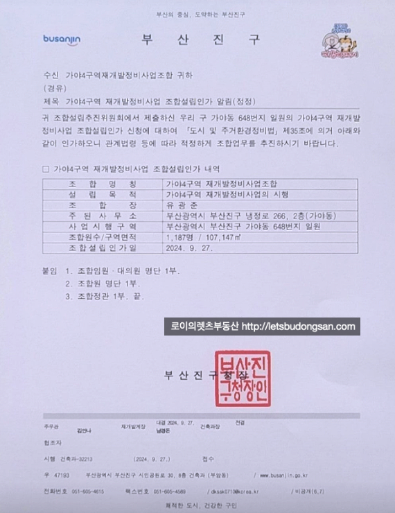 안녕하세요 로이의렛츠부동산 ( JAK 제이에이케이 부산 ) 입니다. 오늘은 구역지정후 조합설립인가 받은...