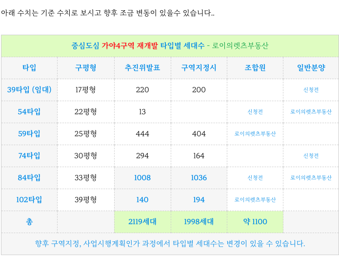가야4구역 현재 타입별 세대수 소개해 드립니다.