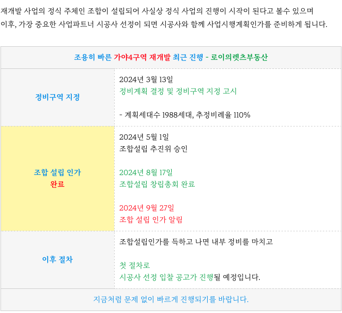 가야4구역 재개발 현재까지 주요 일자별 진행 & 이후 절차 소개등 추가 정보는 아래 페이지를 참고 부탁드립니다.