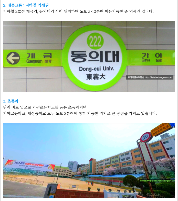 부산 중심도심 서면과 차량 5분여 거리에 인접해 있으며